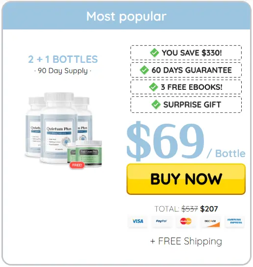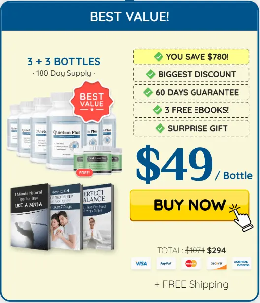 For the best and most consistent results, Quietum Plus is recommended for at least 3 to 6 months of use. While you can order a single bottle, most customers prefer the 3-bottle or 6-bottle packages, since they come with great discounts and ensure you won’t run out of supply during the treatment. Remember: this special offer isn’t available all year round, so make sure to take advantage while it lasts!